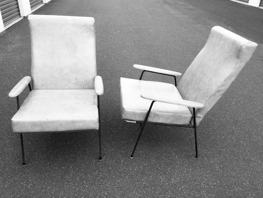 This vintage TV chairs will have the metal sand blasted and powdercoated in your choice of colour, re-upholstered in your choice of fabric and will have brand new foam cushions for comfort. Only one left available.